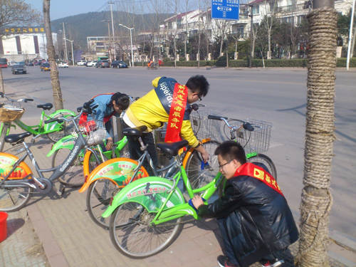 信電學(xué)子校外維護(hù)公共自行車(chē),彰顯綠色中國(guó)夢(mèng)